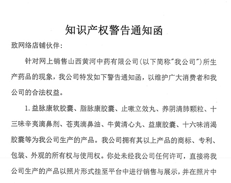 • 山西黃河中藥有限公司《知識產權警告通